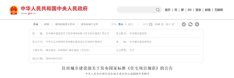 近日,住房城鄉(xiāng)建設(shè)部批準《住宅項目規(guī)范》為國家標準,編號為GB 55038-2025,自2025年5月1日起實施。住房城鄉(xiāng)建設(shè)部發(fā)布的公告明確,本規(guī)范為強制性工程建設(shè)規(guī)范,全部條文必須嚴格執(zhí)行。現(xiàn)行工程建設(shè)標準中有關(guān)規(guī)定與本規(guī)范不一致的,以本規(guī)范的規(guī)定為準。新規(guī)范以住宅項目整體為對象,以安全、舒適、綠色、智慧為目標,在規(guī)模、布局、功能、性能和關(guān)鍵技術(shù)措施等方面,對住宅項目的建設(shè)、使用和